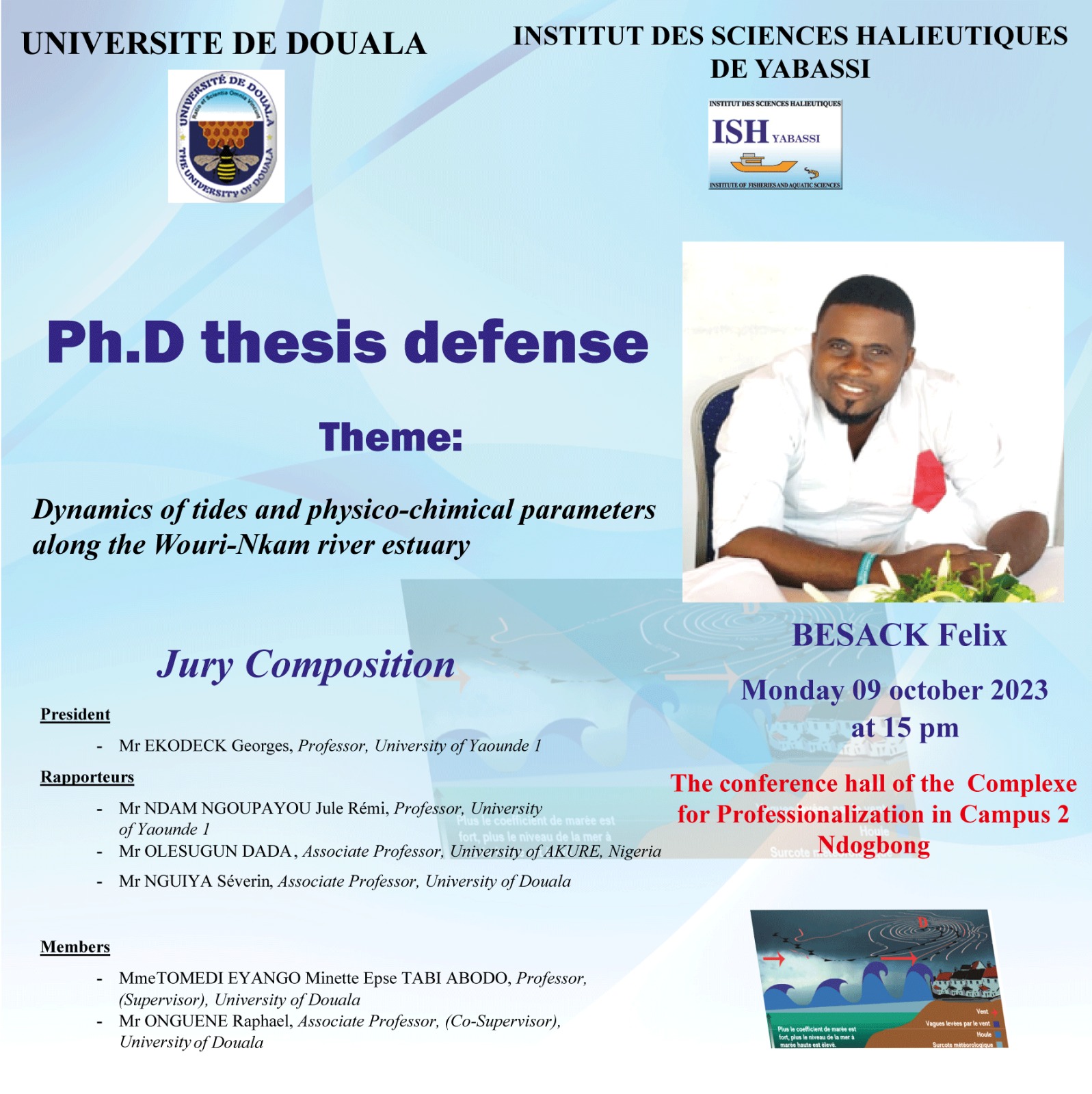 - Doctorate/PhD thesis defense at the Institute of Fisheries and Aquatic Sciences of the now Dr. Djeuachi Tchuitcheu Huguette Lesly epse Siewe