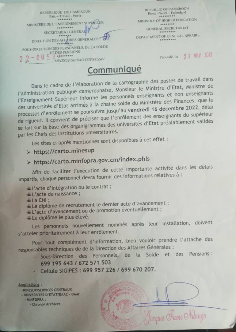 - Communiqué relatif à la vérification des informations liées aux étudiants inscrits